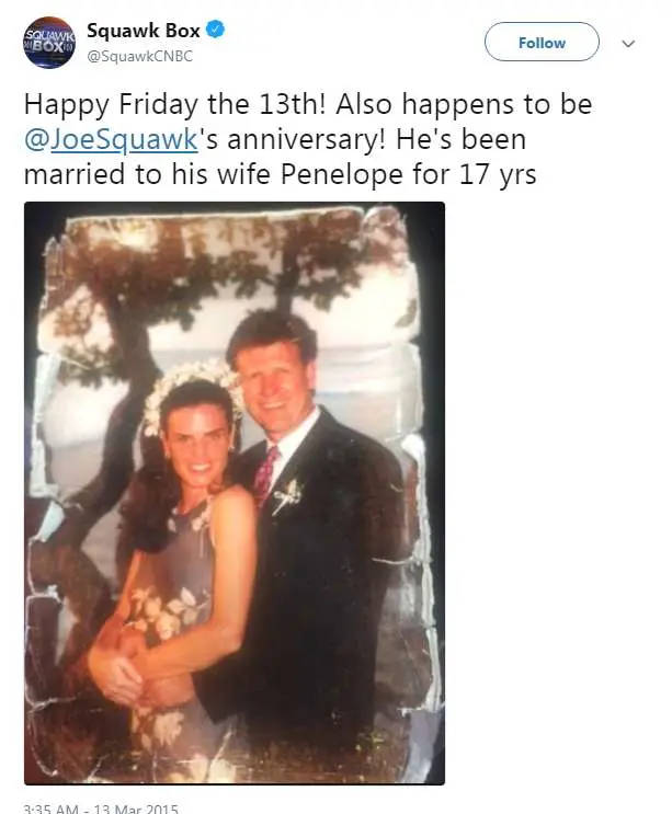 Well, it seems like Joe has more to owe to CNBC than a hefty salary. He met his future wife, Penelope Scott through the channel after she joined in 1996.